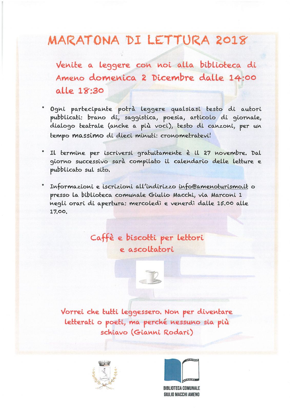 Venite a leggere con noi alla biblioteca di Ameno domenica 2 Dicembre 2018 dalle ore 14:00 alle ore 18:30
