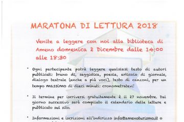 Venite a leggere con noi alla biblioteca di Ameno domenica 2 Dicembre 2018 dalle ore 14:00 alle ore 18:30