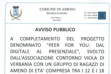 A COMPLETAMENTO DEL PROGETTO DENOMINATO "PEER FOR YOU: DAL DIGITALE AL PRESENZIALE", SVOLTO DALL'ASSOCIAZIONE CONTORNO VIOLA DI VERBANIA CON UN...
