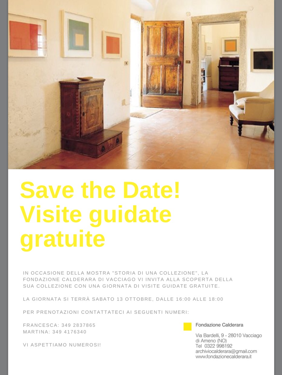 In occasione della mostra "Storia di una collezione", la Fondazione Calderara di Vacciago Vi invita alla scoperta della sua collezione con una giornata di visite guidate gratuite.