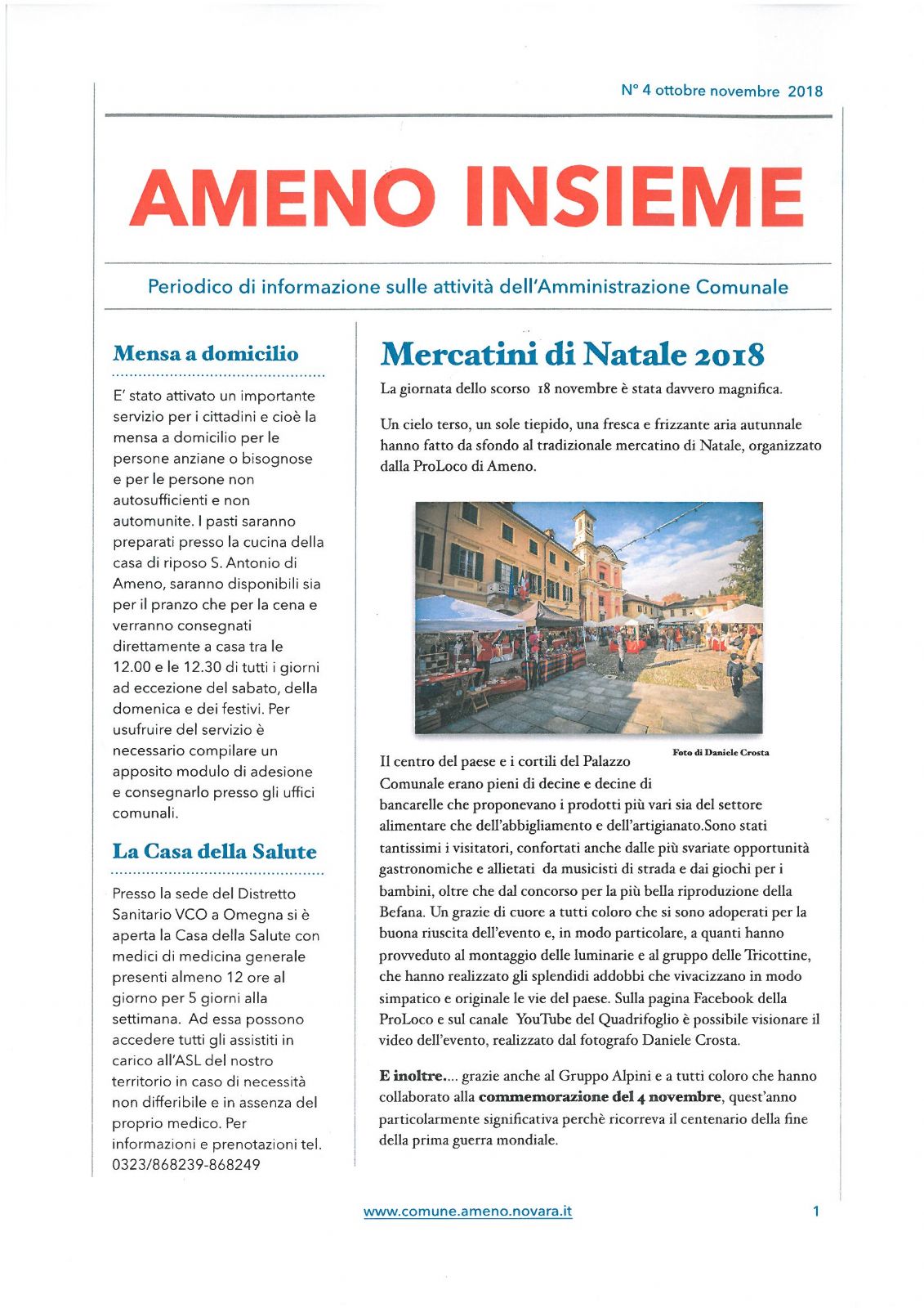 AMENO INSIEME - PERIODICO DI INFORMAZIONE SULLE ATTIVITA' DELL'AMMINISTRAZIONE COMUNALE - OTTOBRE - NOVEMBRE 2018