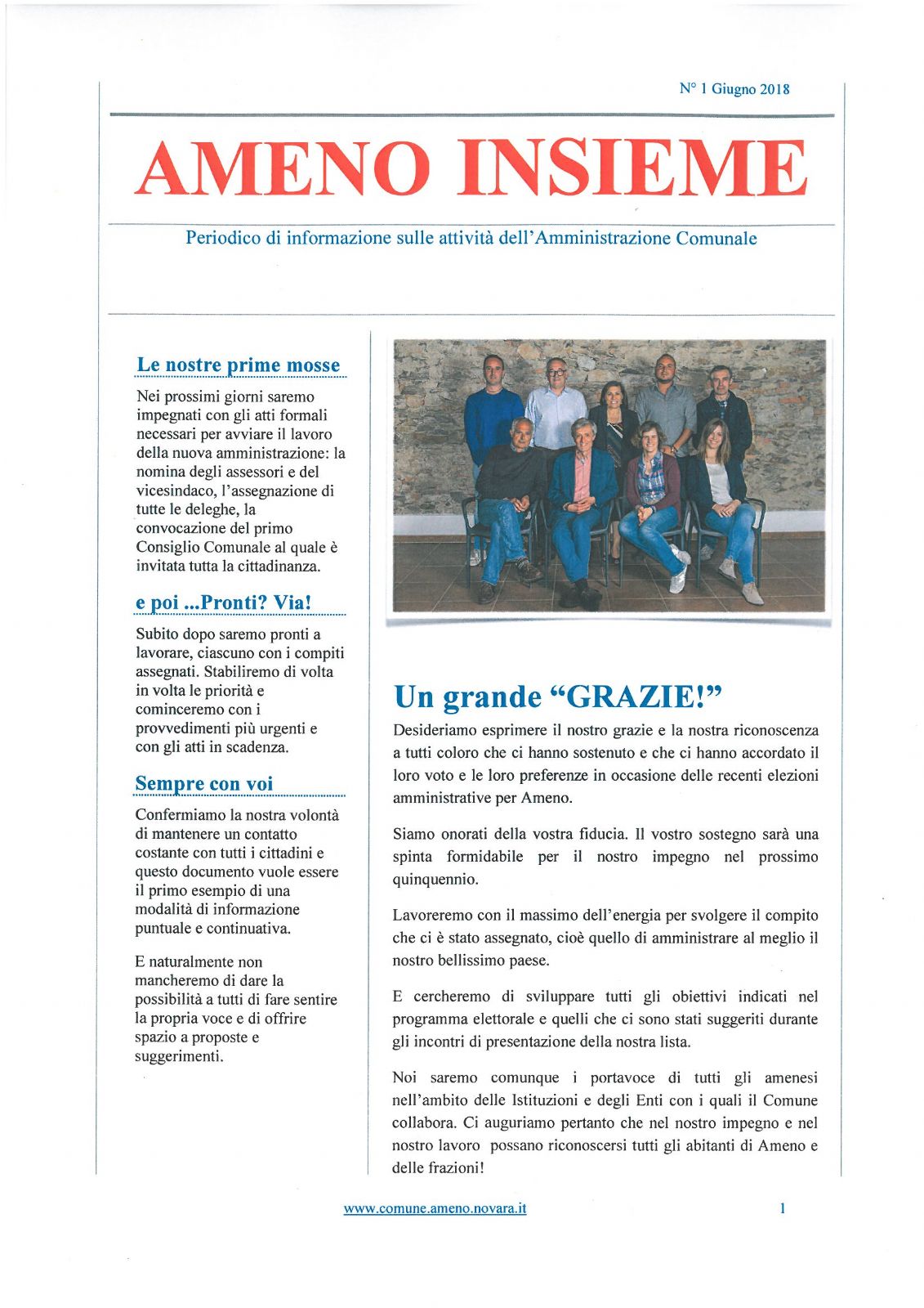AMENO INSIEME - PERIODICO DI INFORMAZIONE SULLE ATTIVITA' DELL'AMMINISTRAZIONE COMUNALE - GIUGNO 2018