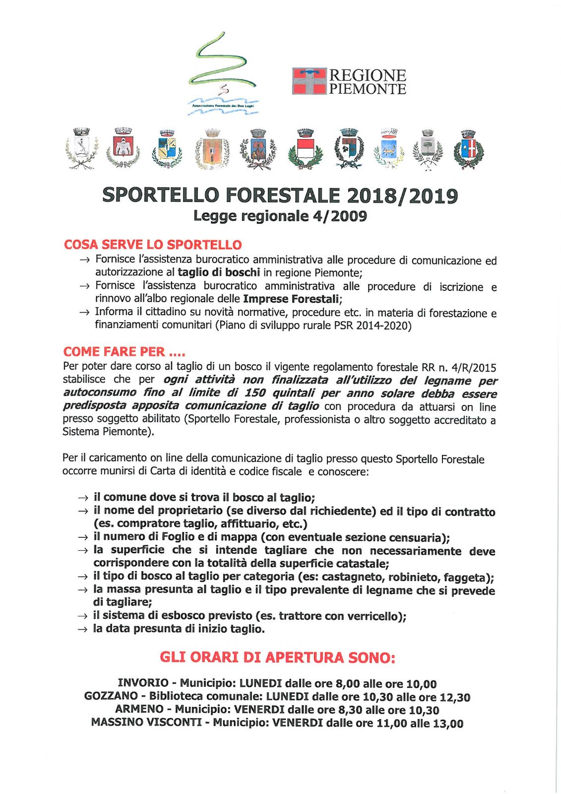 SPORTELLO FORESTALE 2018/2019 - LEGGE REGIONALE 4/2009