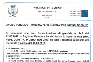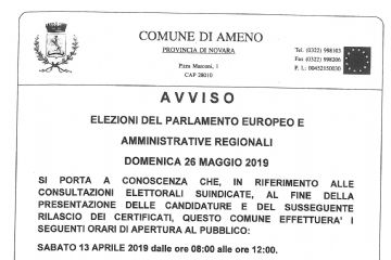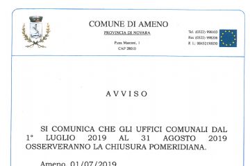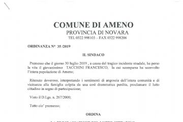 Ritenendo conforme ai sentimenti della popolazione di Ameno la partecipazione della Comunità alla scomparsa del giovanissimo TACCHINI FRANCESCO, avvenuta lo scorso 30 luglio, viene proclamato il...