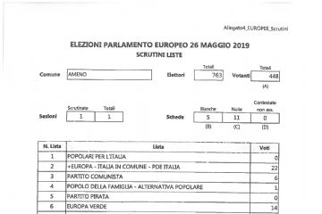 ELEZIONI PARLAMENTO EUROPEO 26 MAGGIO 2019 - SCRUTINI LISTE