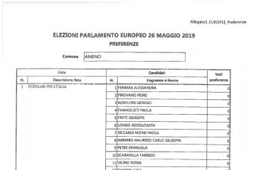 ELEZIONI PARLAMENTO EUROPEO 26 MAGGIO 2019 - PREFERENZE