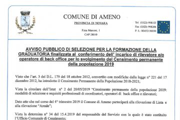AVVISO PUBBLICO DI SELEZIONE PER LA FORMAZIONE DELLA GRADUATORIA FINALIZZATA AL CONFERIMENTO DELL'INCARICO DI RILEVATORE E/O OPERATORE DI BACK OFFICE PER LO SVOLGIMENTO DEL CENSIMENTO PERMANENTE...