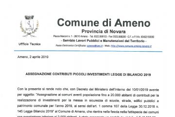 Leggi tuttoASSEGNAZIONE CONTRIBUTI PICCOLI INVESTIMENTI LEGGE DI BILANCIO 2019