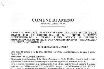 BANDO DI MOBILITA' ESTERNA AI SENSI DELL'ART. 30 DEL D.LGS. 165/2001 PER LA COPERTURA, DI N. 1 POSTO A TEMPO INDETERMINATO A TEMPO PIENO AVENTE IL PROFILO PROFESSIONALE DI "ISTRUTTORE...