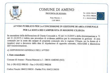 AVVISO PUBBLICO PER LA CONCESSIONE IN GESTIONE DI AREA COMUNALE PER LA SOSTA DEI CAMPER SITA IN REGIONE CILIEGIA