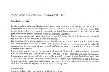 Leggi tuttoDISPOSIZIONI ANTICIPATE DI TRATTAMENTO - DAT