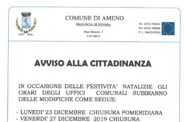 MODIFICHE ORARI DI APERTURA DEGLI UFFICI COMUNALI IN OCCASIONE DELLE FESTIVITA' NATALIZIE